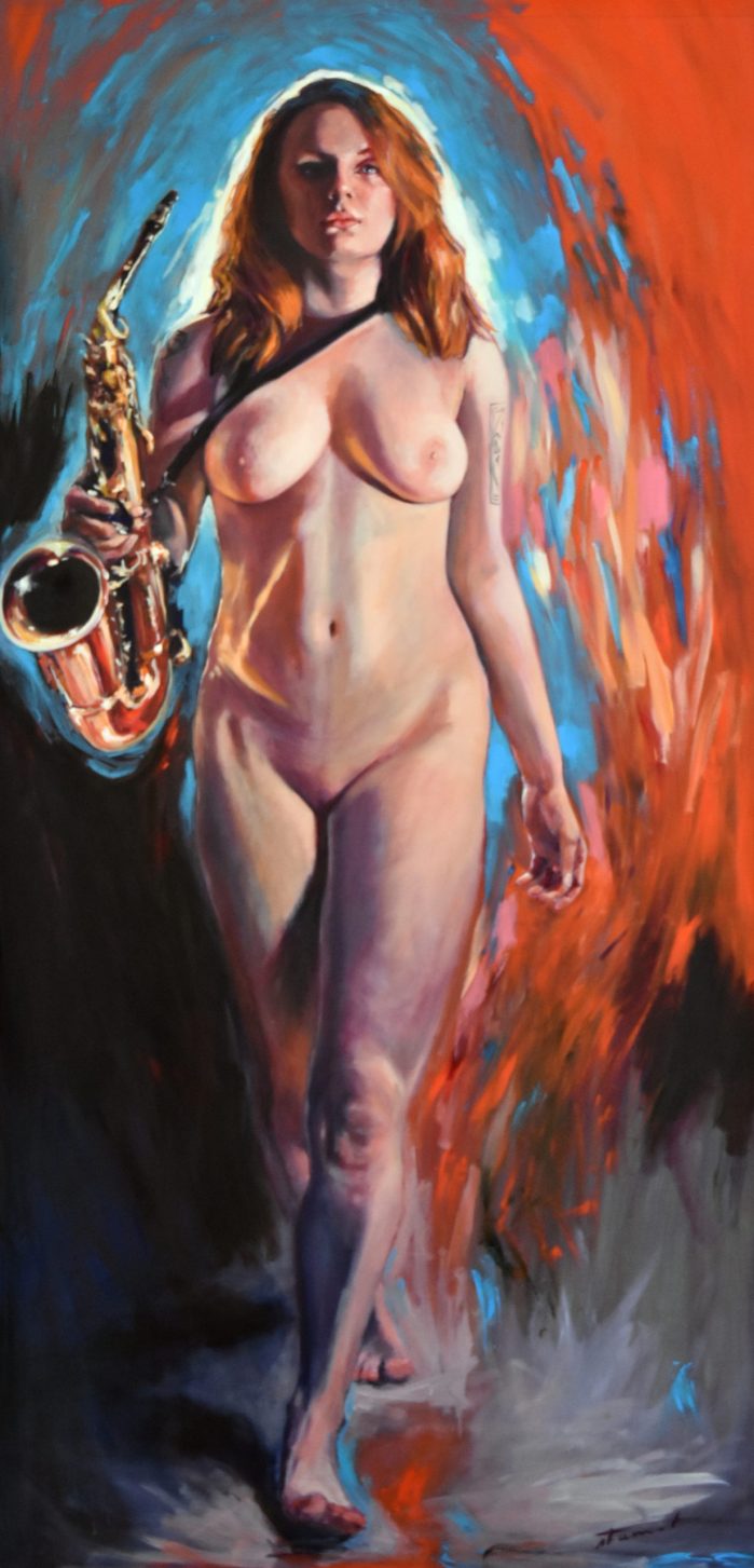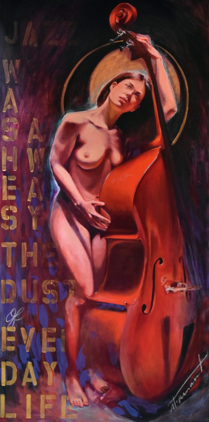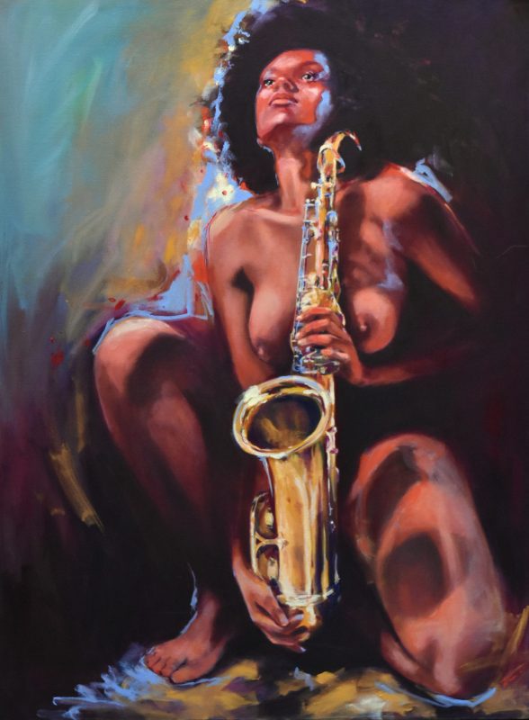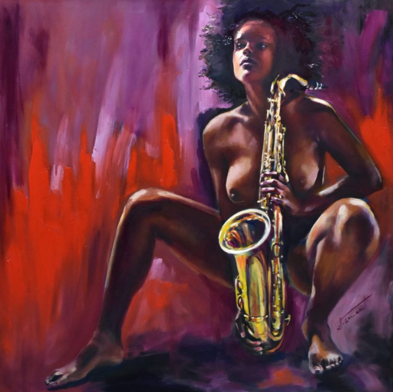 « Naked Jazz » est une série de peintures qui explore le parallèle entre le jazz et la nudité comme formes d’expression libre et authentique.