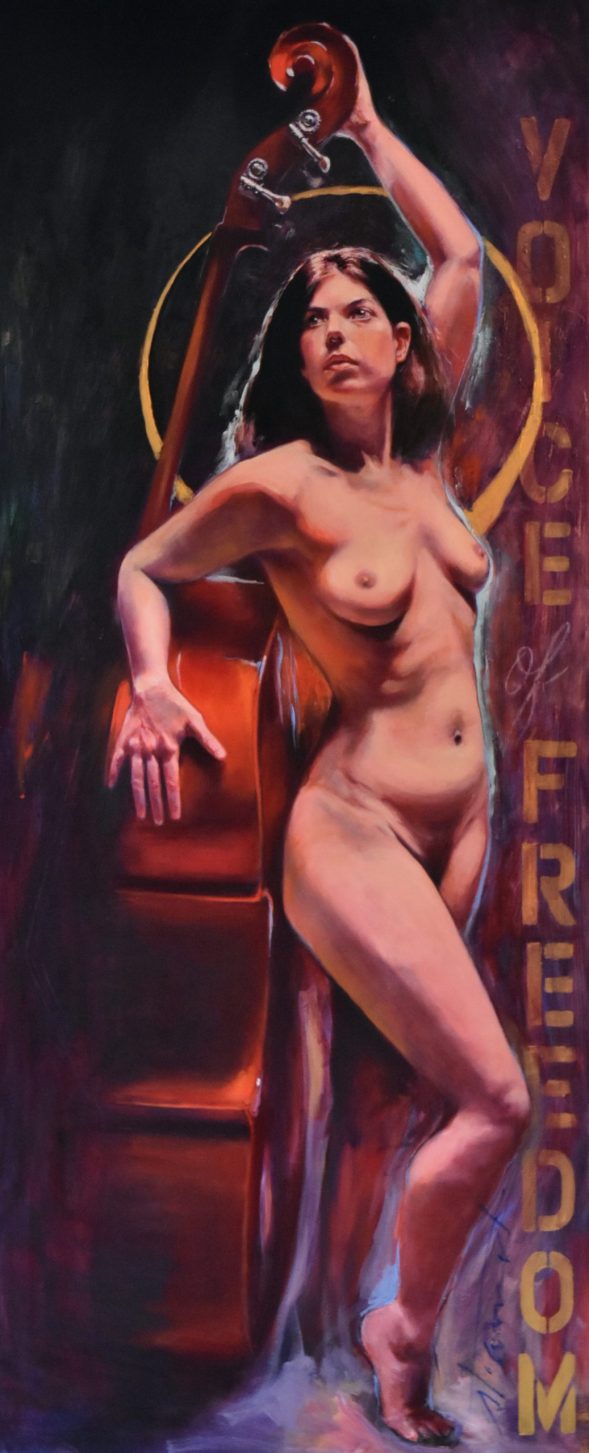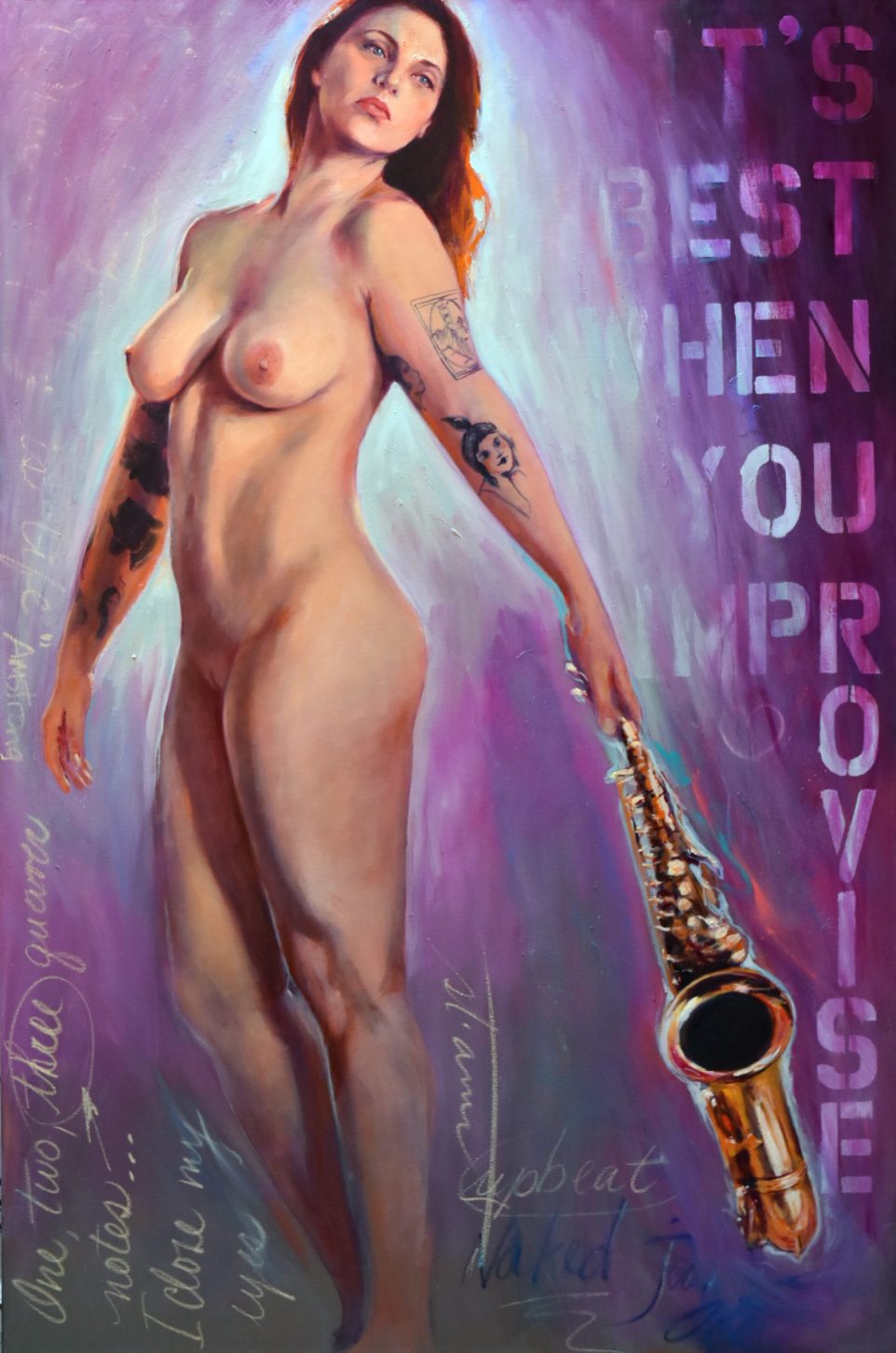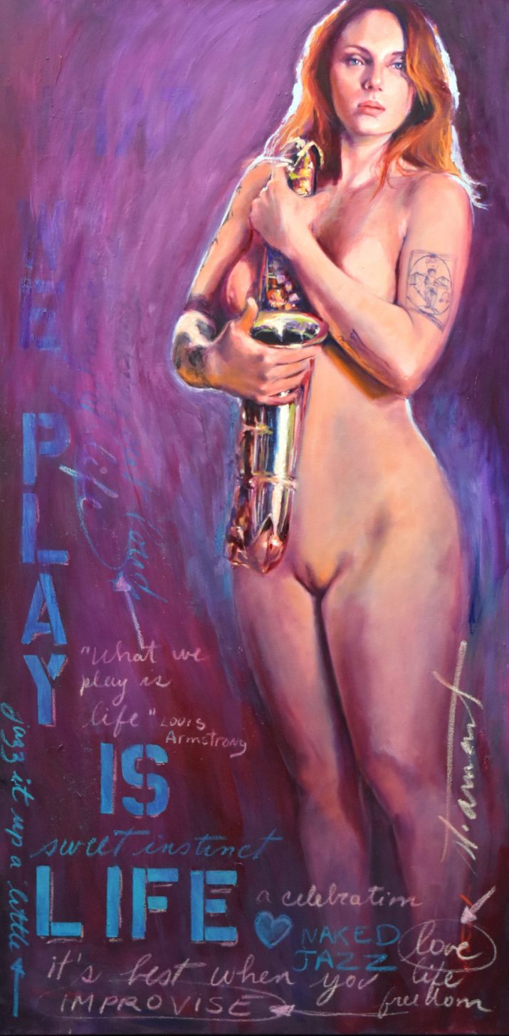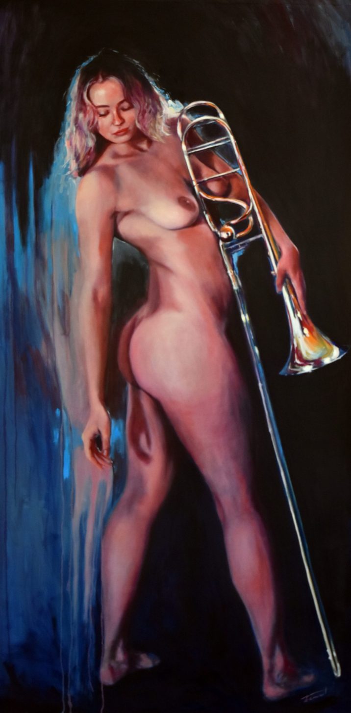 « Naked Jazz » est une série de peintures qui explore le parallèle entre le jazz et la nudité comme formes d’expression libre et authentique.