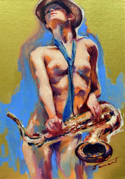 Et si le jazz c’est la vie, et que ma vie c’est la peinture, marier jazz et peinture fut pour moi naturel, instinctif!